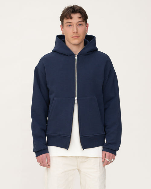 Snow Washed Zip-Through Fleece Hoodie -